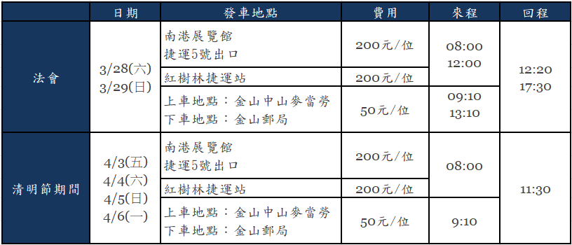115年度法會及清明連假接駁車(3/28~3/29、4/3~4/6)